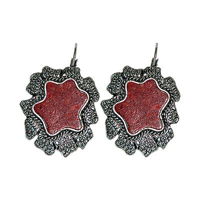 Just like an artist's splash of paint on canvas, we are bedazzled by the intricate handiwork of this small art piece. Made from powdered red coral set on carved metal, this pair of earrings will empower you in the most subtle tone.