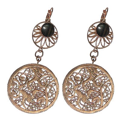 Imagine strolling along Ipanema or Copacabana with a sheer cover up, heeled thongs and this pair of bronze earrings. The sight is divine and the feeling - fun, feminine and glorious! Made from bronze coated metal accented by a turquoise or jasper stone.